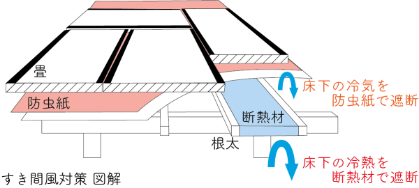 + 追加プラン1(※1) 畳下に防虫紙を敷き詰め、周回をテープで塞ぎます。床下の冷気対策はもとより、夏場の防虫効果も期待出来ます。